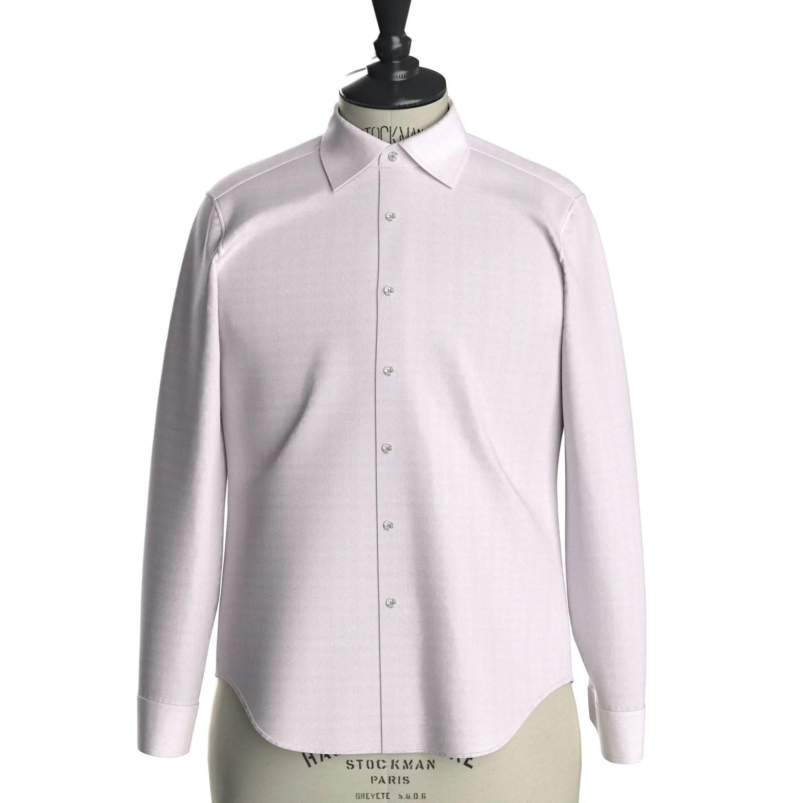 光沢感のあるパープルのチェッカードビー柄の綿100%イージーケア素材です。家庭洗濯+軽いアイロンがけですっきり・きっちりと着こなせる忙しいビジネスマンにぴったりの素材です。肌触りも綿100%の風合いを損なわない着心地です。