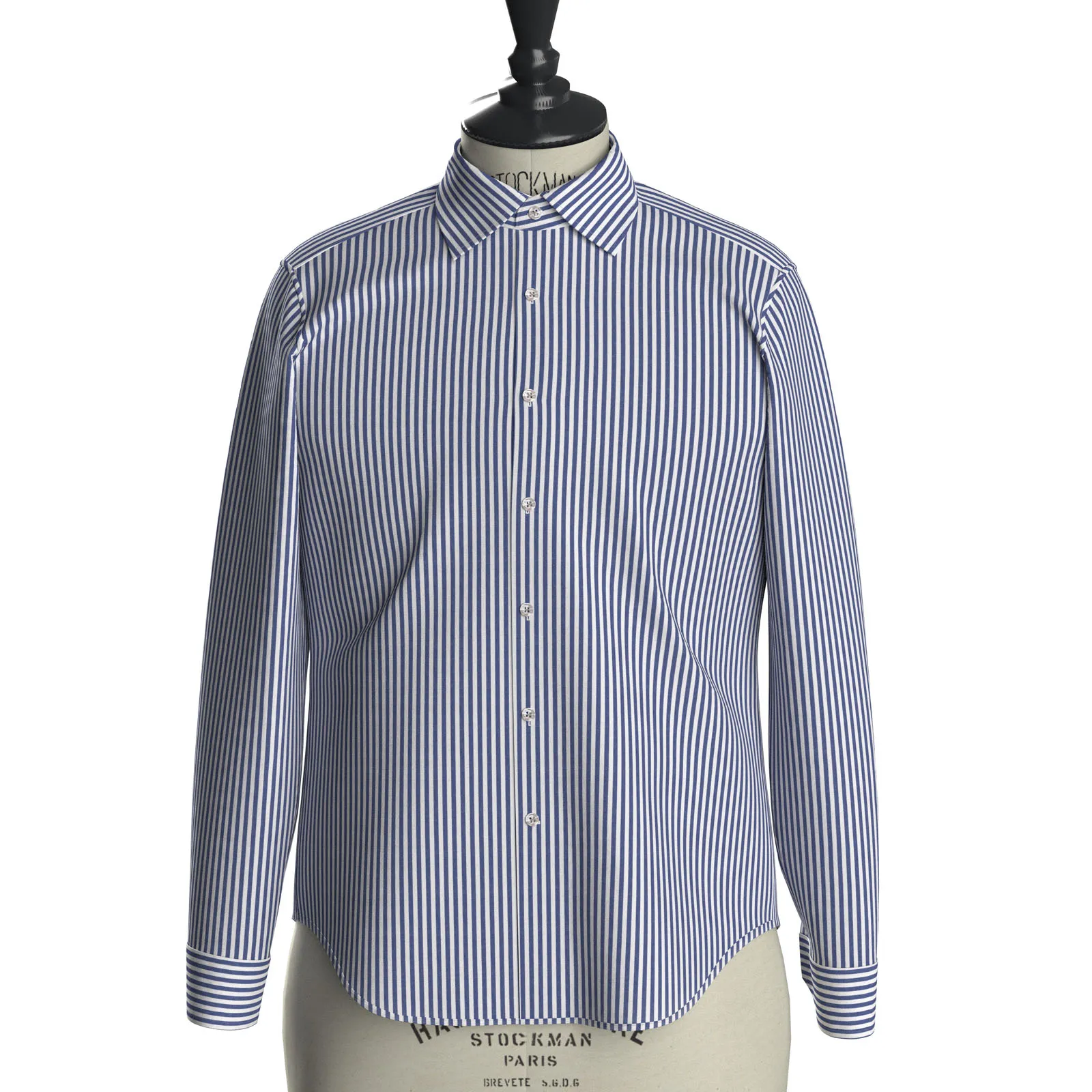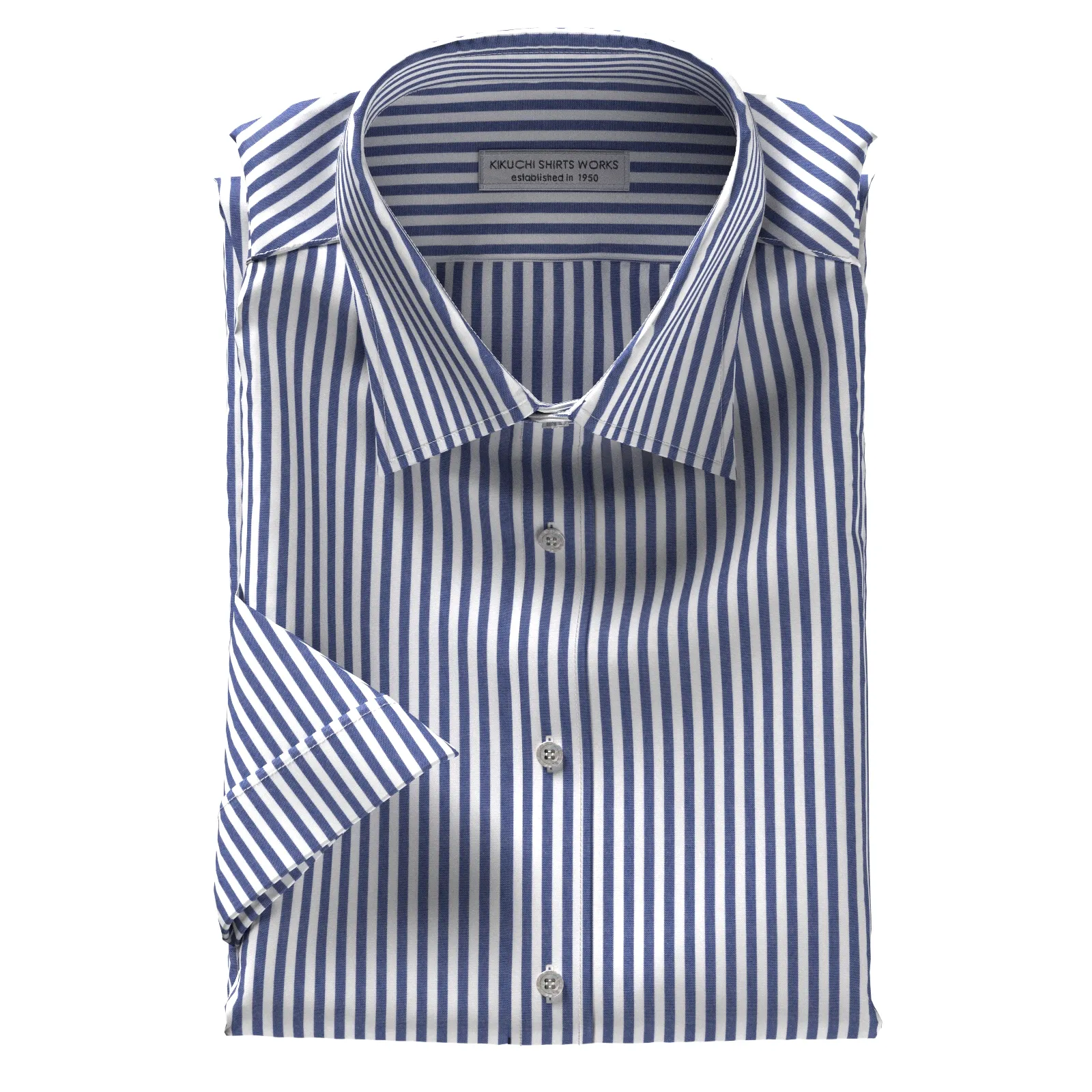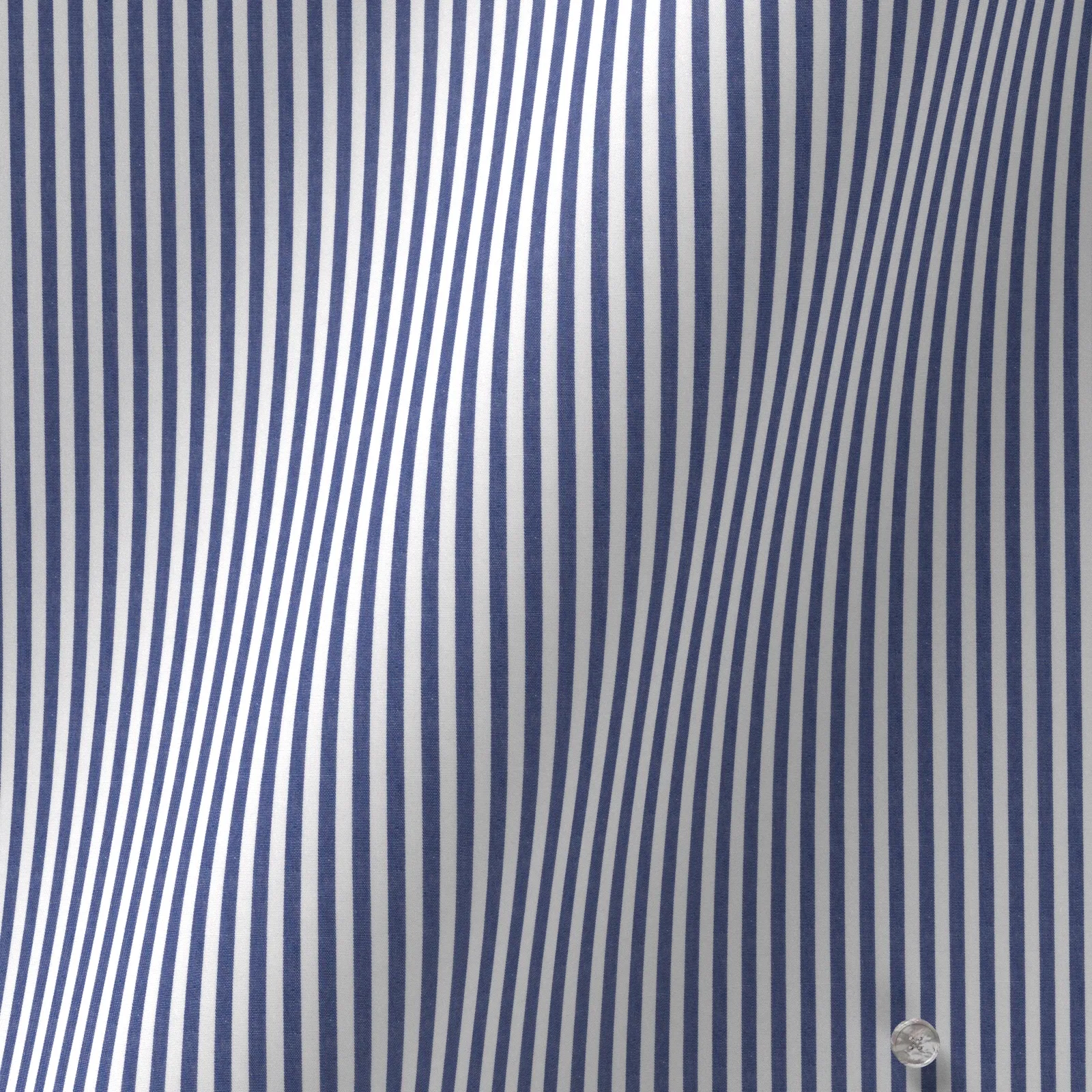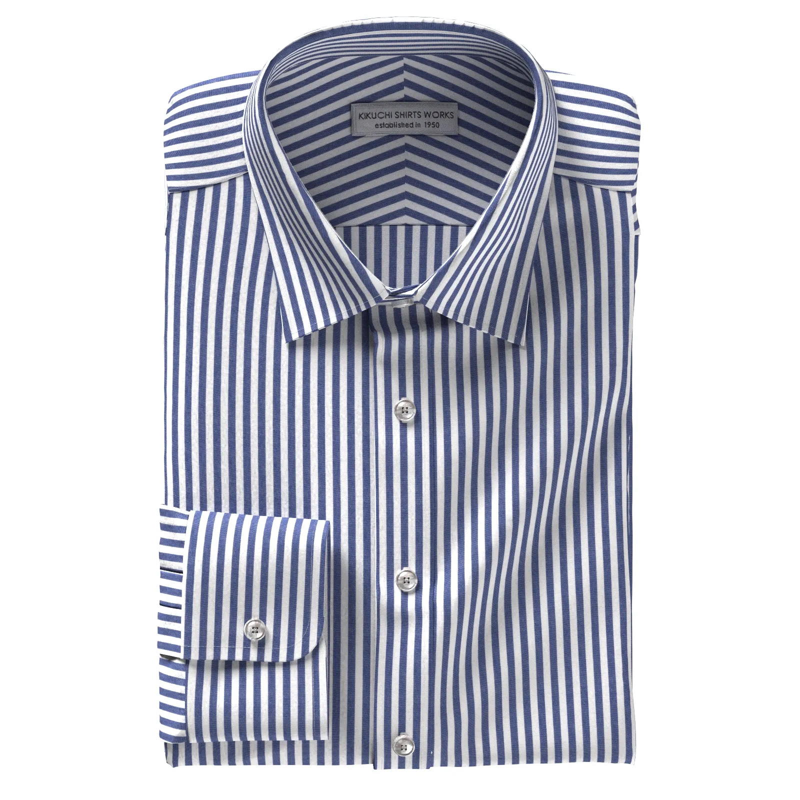 きれいなネイビー・ボールドストライプの綿100%イージーケア素材です。家庭洗濯+軽いアイロンがけですっきり・きっちりと着こなせる忙しいビジネスマンにぴったりの素材です。肌触りも綿100%の風合いを損なわない着心地です。