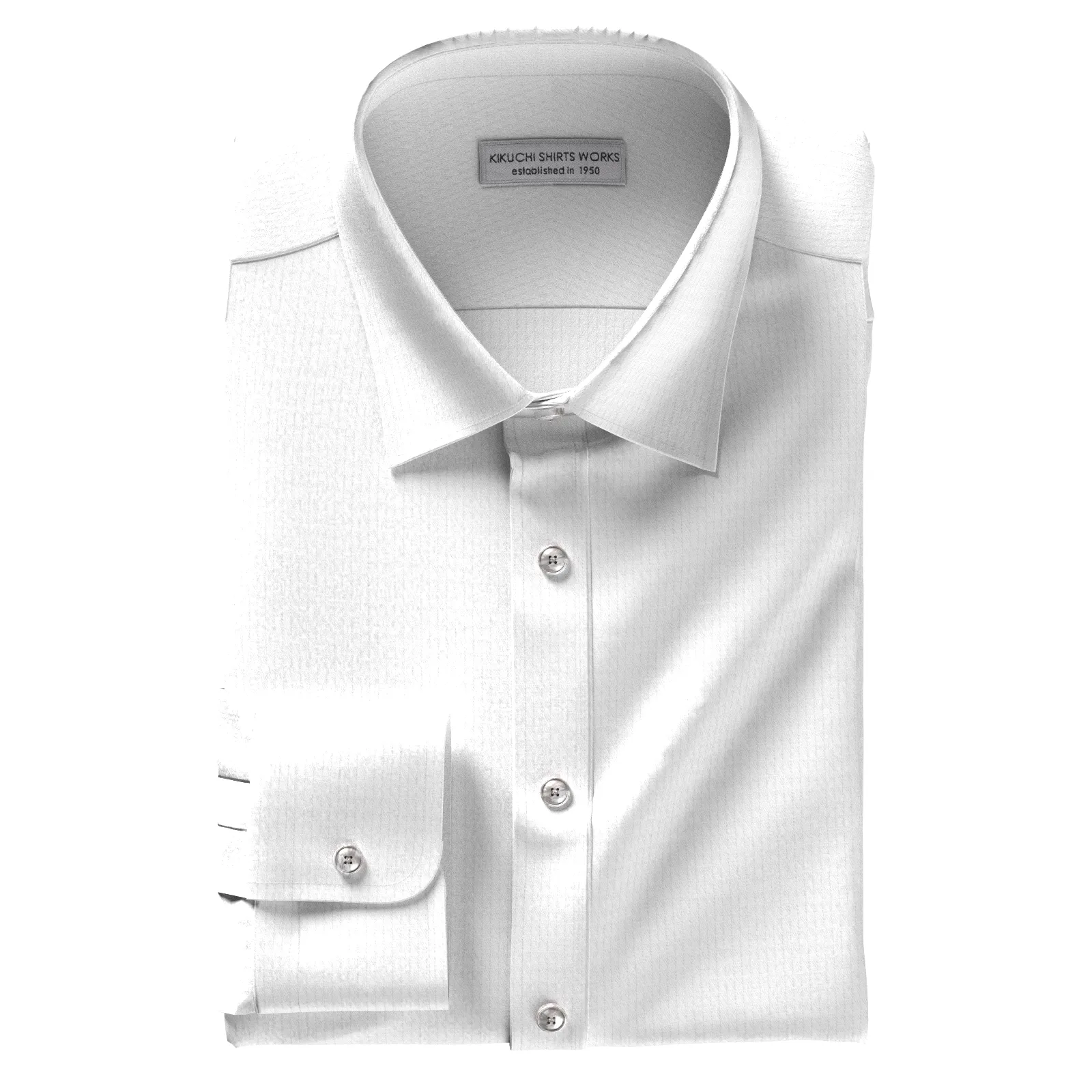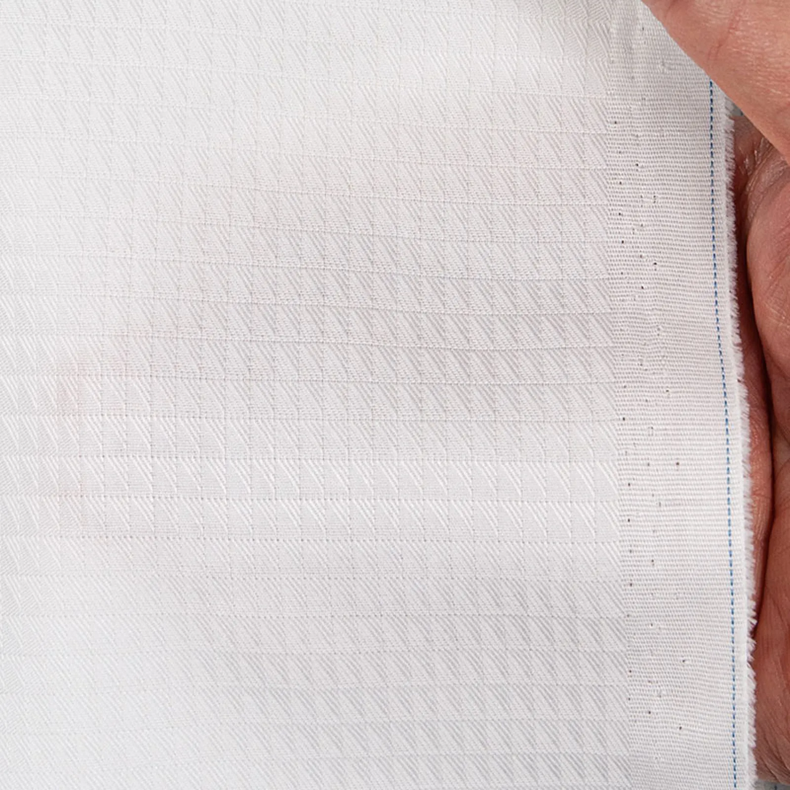光沢感のあるホワイトの細かなスクエア柄の綿100%イージーケア素材です。家庭洗濯+軽いアイロンがけですっきり・きっちりと着こなせる忙しいビジネスマンにぴったりの素材です。肌触りも綿100%の風合いを損なわない着心地です。