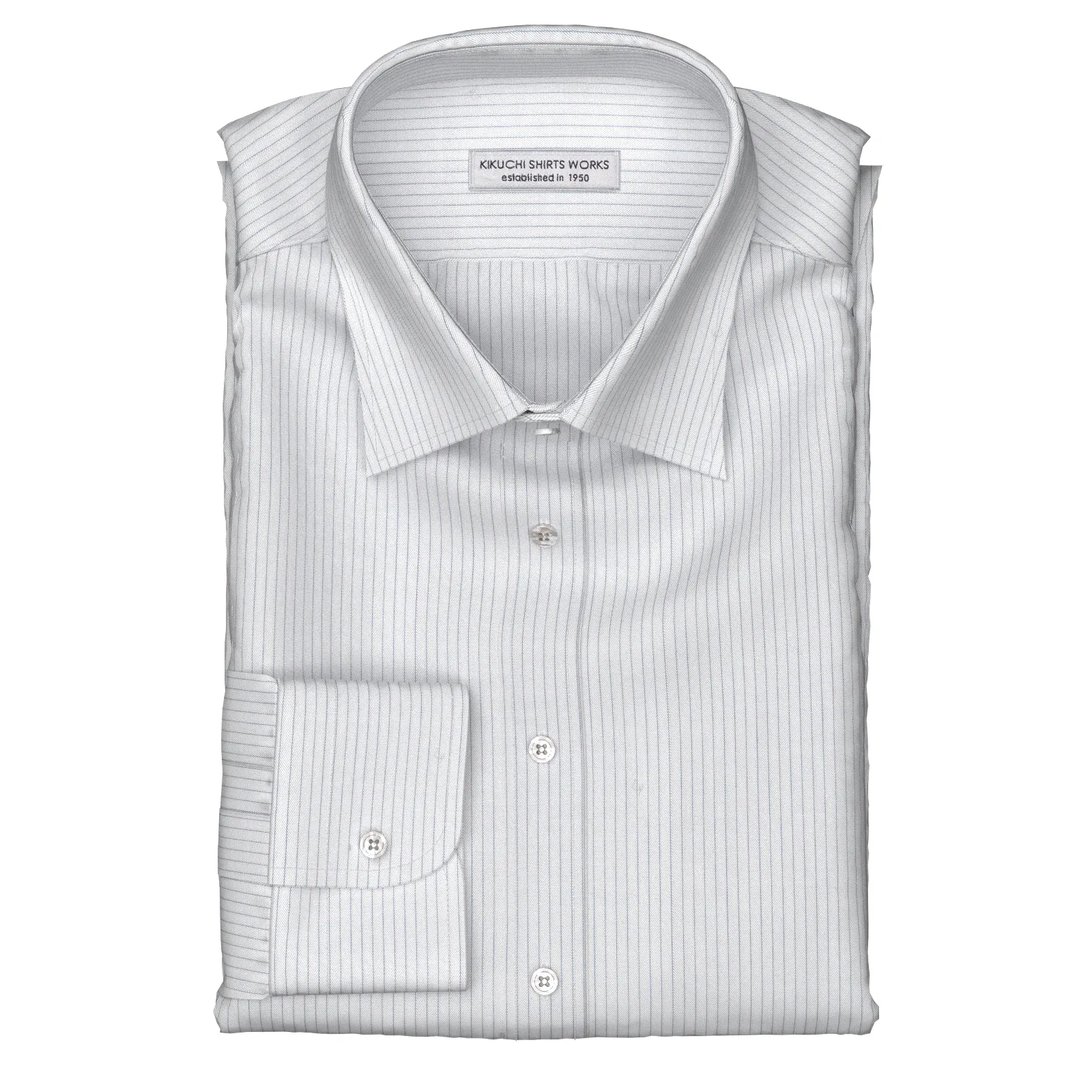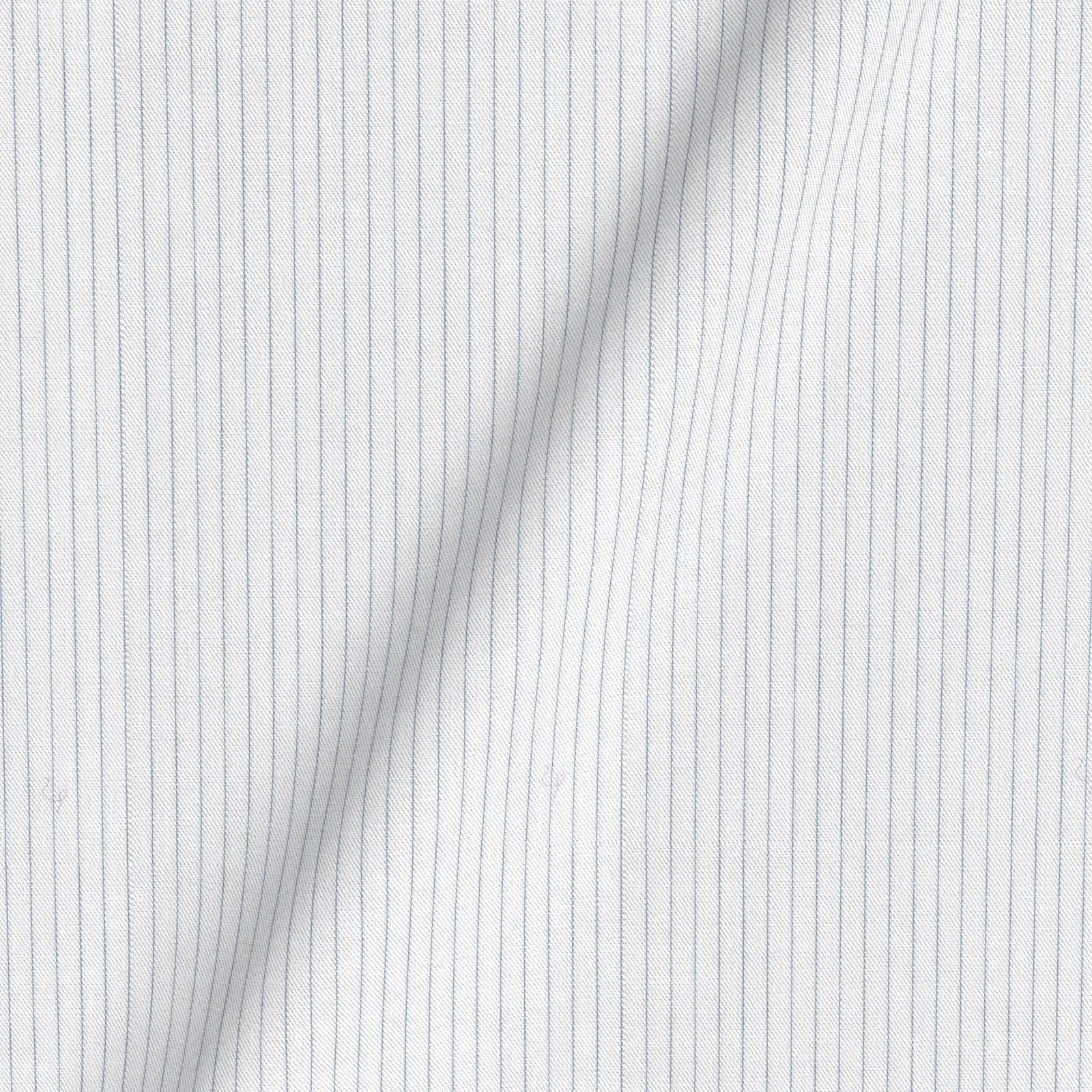 トーマスメイソンSilver Line100双糸の細かなツイルにブルー・ストライプの生地となります。
