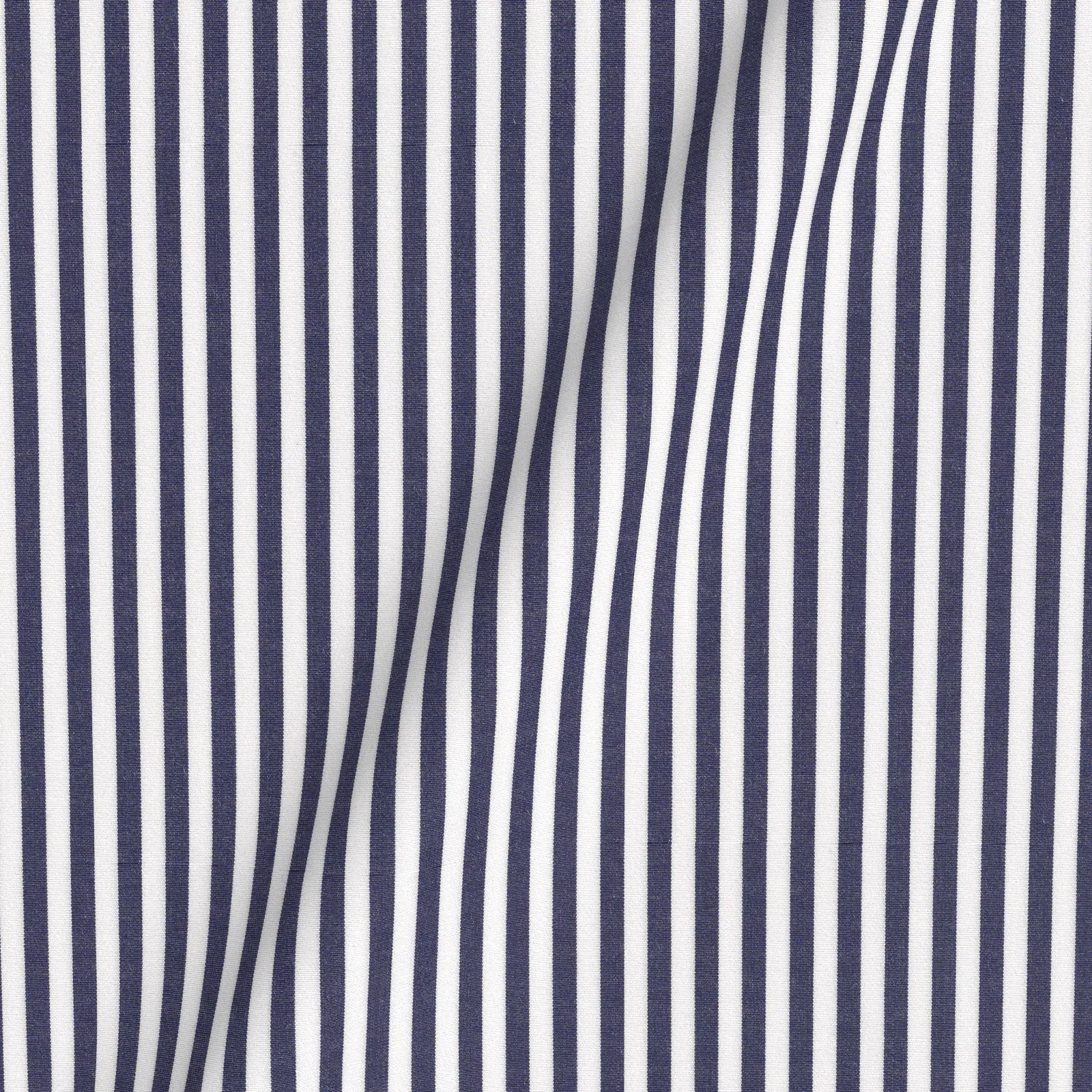 トーマスメイソンSilver Line120双糸のダークネイビー・ロンドンストライプ生地となります。