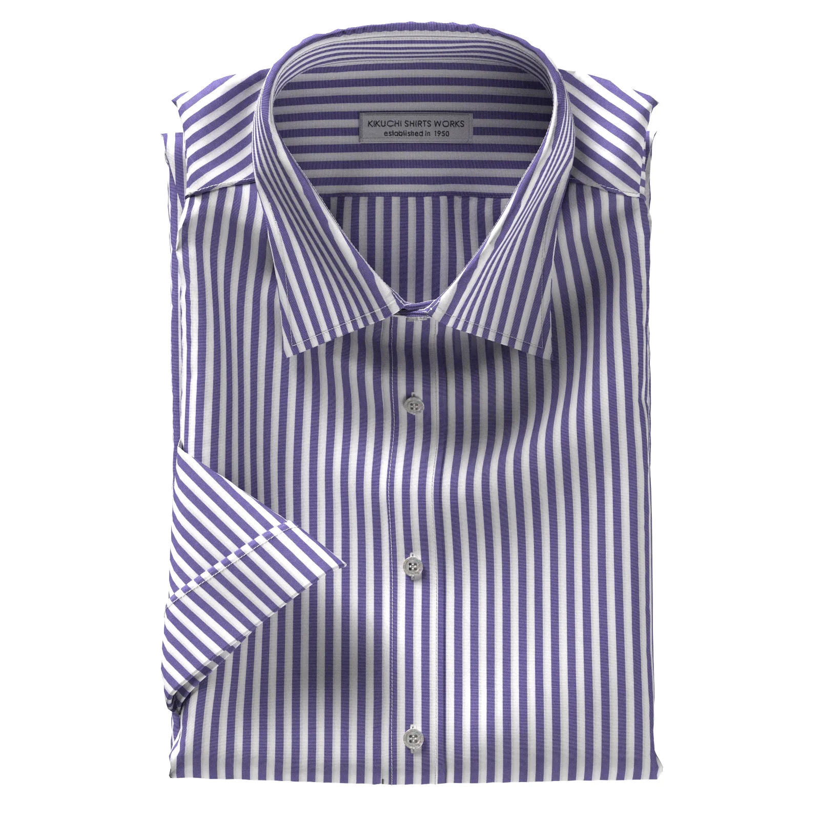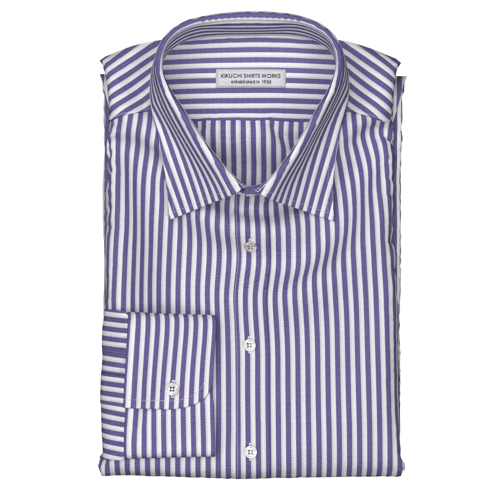 トーマスメイソンSilver Line120双糸のパープル・ロンドンストライプ生地となります。